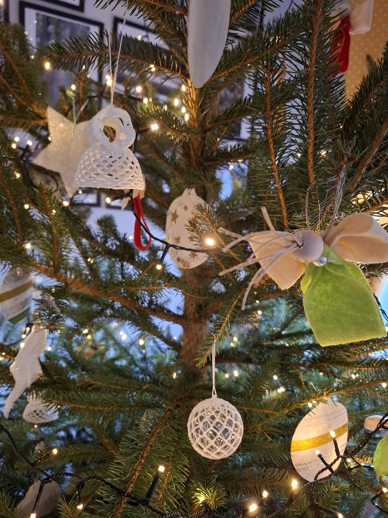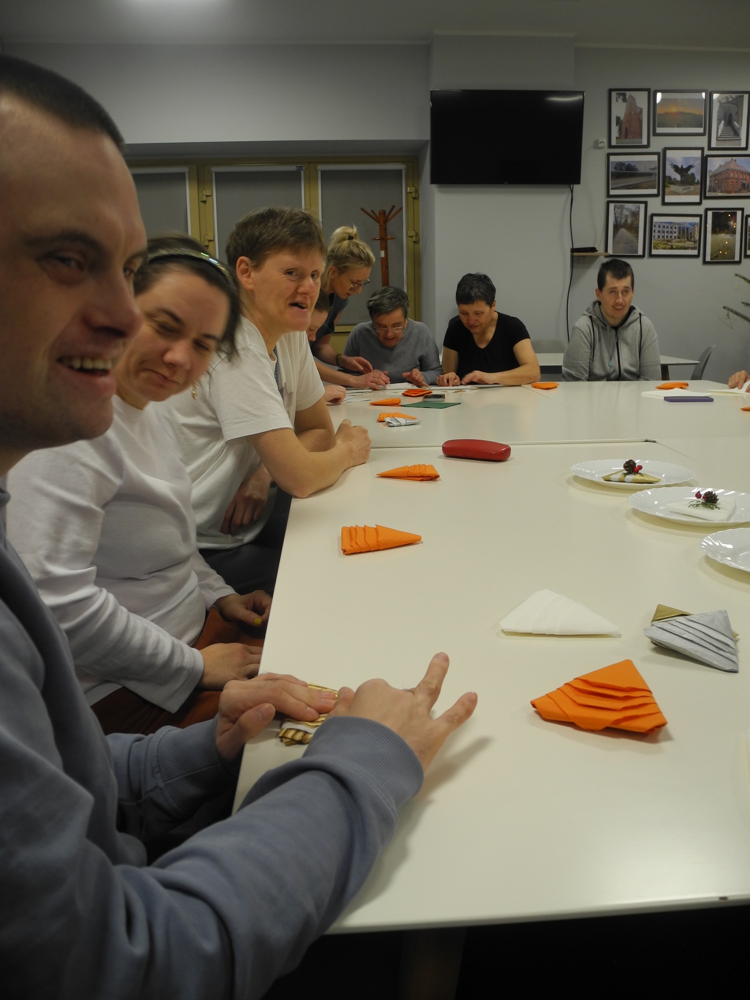 Zaczęliśmy od własnoręcznego przygotowania bombek, którymi ubraliśmy nasze świąteczne drzewko - to była prawdziwa lekcja kreatywności i współpracy, a jej efekt przeszedł nasze najśmielsze oczekiwania 😊; przygotowaliśmy tyle ozdób choinkowych, że wystarczyło ich do udekorowania choinki podczas wspólnego spotkania opłatkowego orgaznizowanego w ramach współpracy z OPS w Krzykosach 😉. Podczas warsztatów poznaliśmy również kolejne sposoby składania serwetek, które wykorzystaliśmy do udekorowania stołów na naszym środowiskowym spotkaniu opłatkowym. Nie zabrakło też pachnących w całym Domu pierników oraz świątecznego filmu przy gorącym kakao, które jeszcze bardziej otuliły nas magią zbliżających się świąt.