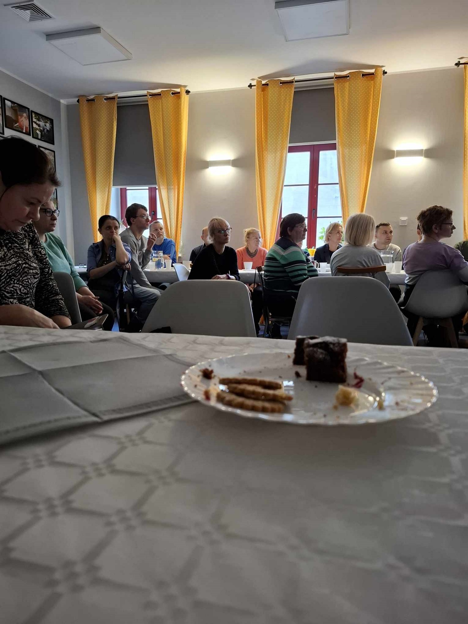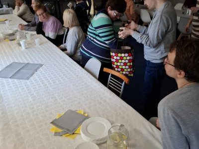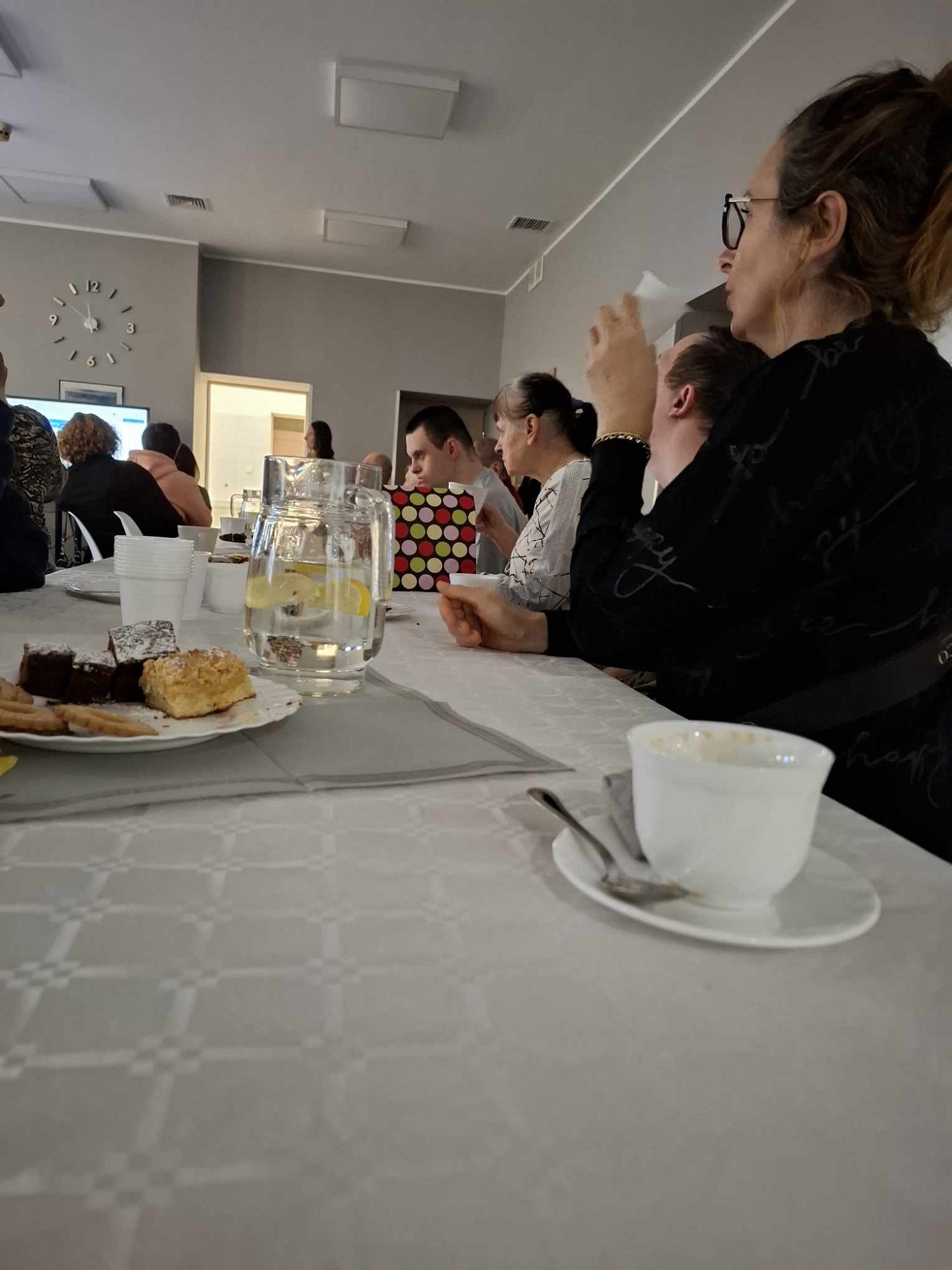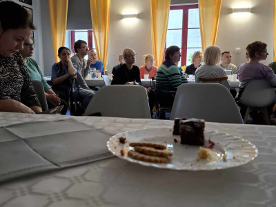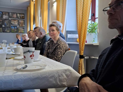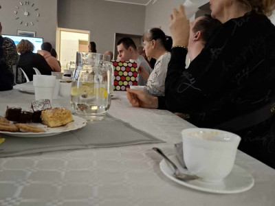 W sobotę 16 listopada gościliśmy w naszym Domu rodziców i opiekunów naszych Uczestników. W ramach warsztatów Uczestnicy udekorowali stoły oraz przygotowali dla swoich bliskich słodki poczęstunek. Pani Beata - nasz psycholog - zadbała o to, aby zaproszeni Goście poznali się ze sobą nieco bliżej - w końcu na co dzień nie spotykamy się zbyt często, a także o to, aby każdy, kto czuje taką potrzebę miał możliwość podzielenia się swoimi trudnościami i dylematami w codziennej opiece nad osobą niepełnosprawną. Dodatkową atrakcją spotkania było głosowanie na teledysk w konkursie, w którym również nasz Dom wziął udział oraz urodzinowe Sto Lat! dla naszego Darka 😊