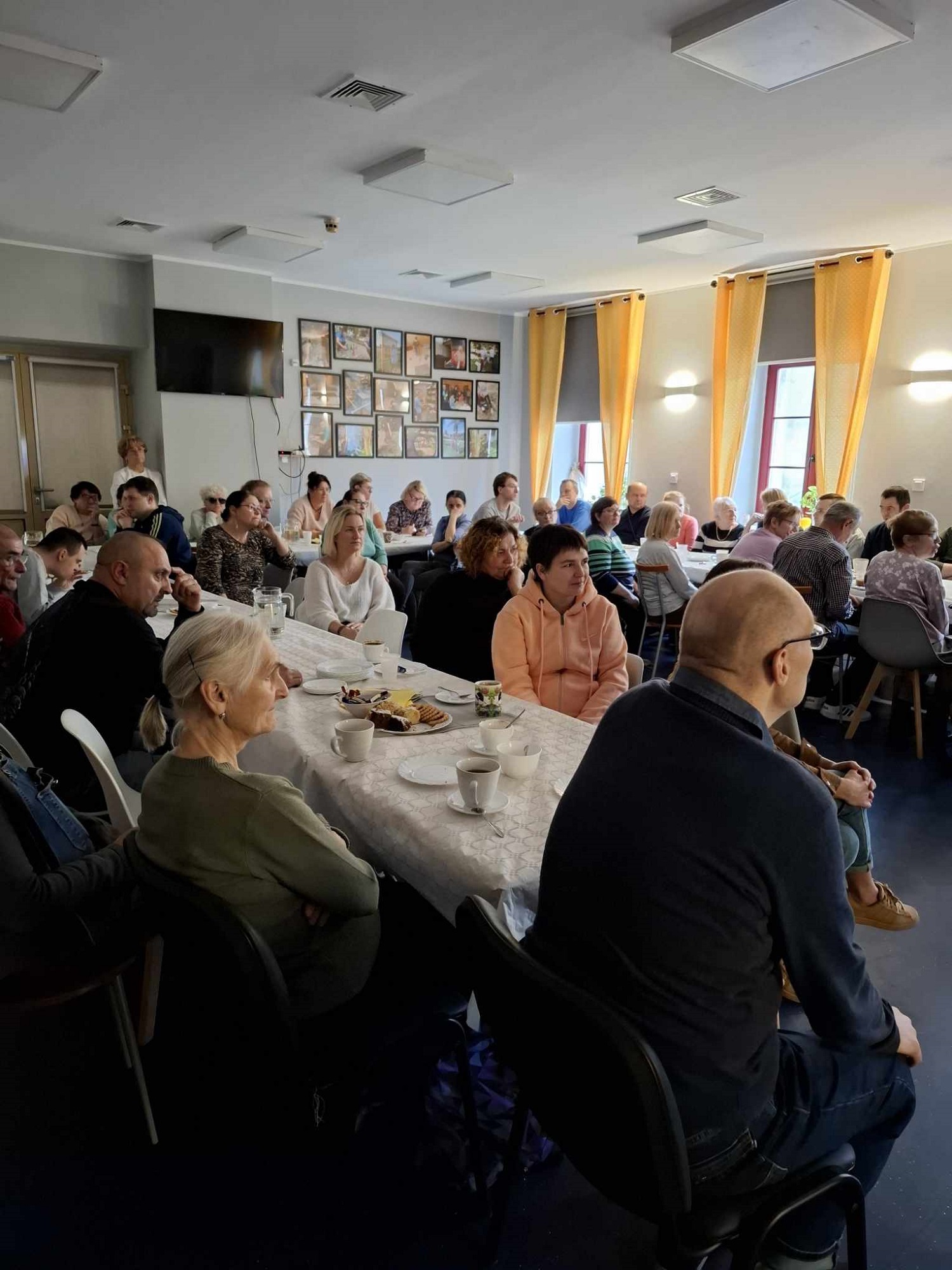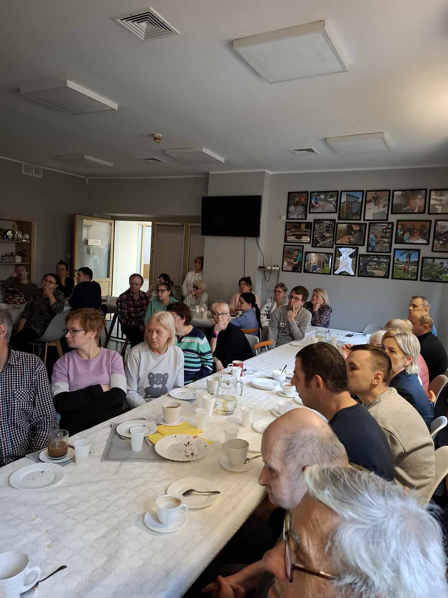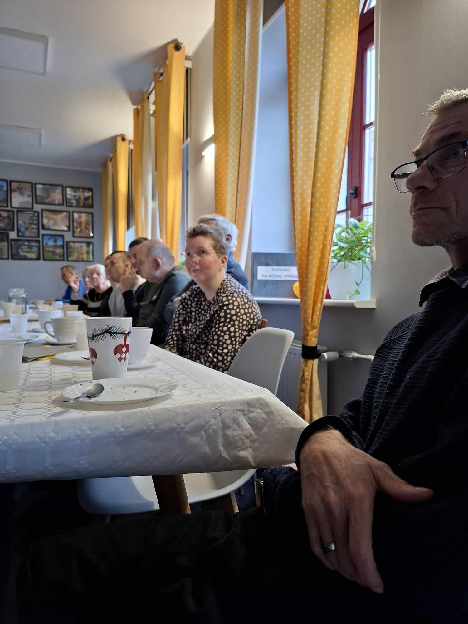 W sobotę 16 listopada gościliśmy w naszym Domu rodziców i opiekunów naszych Uczestników. W ramach warsztatów Uczestnicy udekorowali stoły oraz przygotowali dla swoich bliskich słodki poczęstunek. Pani Beata - nasz psycholog - zadbała o to, aby zaproszeni Goście poznali się ze sobą nieco bliżej - w końcu na co dzień nie spotykamy się zbyt często, a także o to, aby każdy, kto czuje taką potrzebę miał możliwość podzielenia się swoimi trudnościami i dylematami w codziennej opiece nad osobą niepełnosprawną. Dodatkową atrakcją spotkania było głosowanie na teledysk w konkursie, w którym również nasz Dom wziął udział oraz urodzinowe Sto Lat! dla naszego Darka 😊
